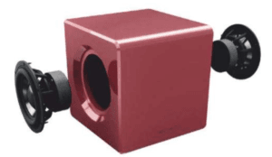 The Ayers Sub is just as compact as the Velodyne and boosts its two 8.75-inch aluminum drivers with a 280-watt Hypex amplifier. The drivers are arranged in a push-push configuration. Since they face each other, each driver cancels out the movements of the other, resulting in a very quiet enclosure.