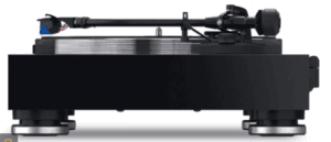 In a belt drive, vibrations of the motor are also dampened by the belt on the way to the platter. This too doesn’t happen in a direct drive, making motor quality even more important. The turntables of this design found today can be called absolutely solid. The platter accelerates ultra-fast and stops even faster thanks to electronic braking. These are undoubtedly DJ genes, which I like. It is controlled by a rotary knob on the top of the piano-lacquered MDF plinth. This one-knob operation is also known from the Magnat MTT-990: There is no separate speed selection button. Nor are there things like a built-in phono stage, A/D converter, or Bluetooth. No, here you have a purist turntable before you, where everything that could negatively affect the sound or drive up the price has been omitted.